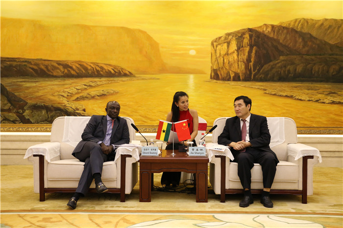 滨州日报/滨州网讯 7月19日,副市长贾善银会见了加纳共和国驻华大使爱德华•博阿滕一行。滨州职业学院党委书记杨光军参加会见。