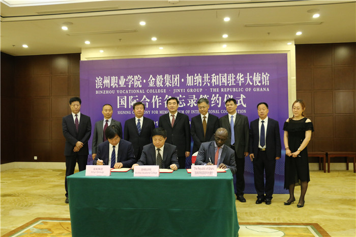 会见期间,滨州职业学院、高新区金毅集团与加纳共和国驻华大使馆签署了国际合作备忘录协议,共同实施“智能特种工程机械+鲁班工坊产业化”项目。据悉,该项目旨在落实2018年中非合作论坛北京峰会提出的“八大行动计划”,以建设非洲、发展非洲为宗旨,计划建设滨州再制造(中国)贸易中心、中非技术技能人才成长平台和德国工匠培训平台,实施智能装备工程制造产业化计划和非洲工匠培养计划,通过鲁班工坊建设和培训计划为非洲各国建立机械行业人才梯队,推动非洲经济更好更快发展。