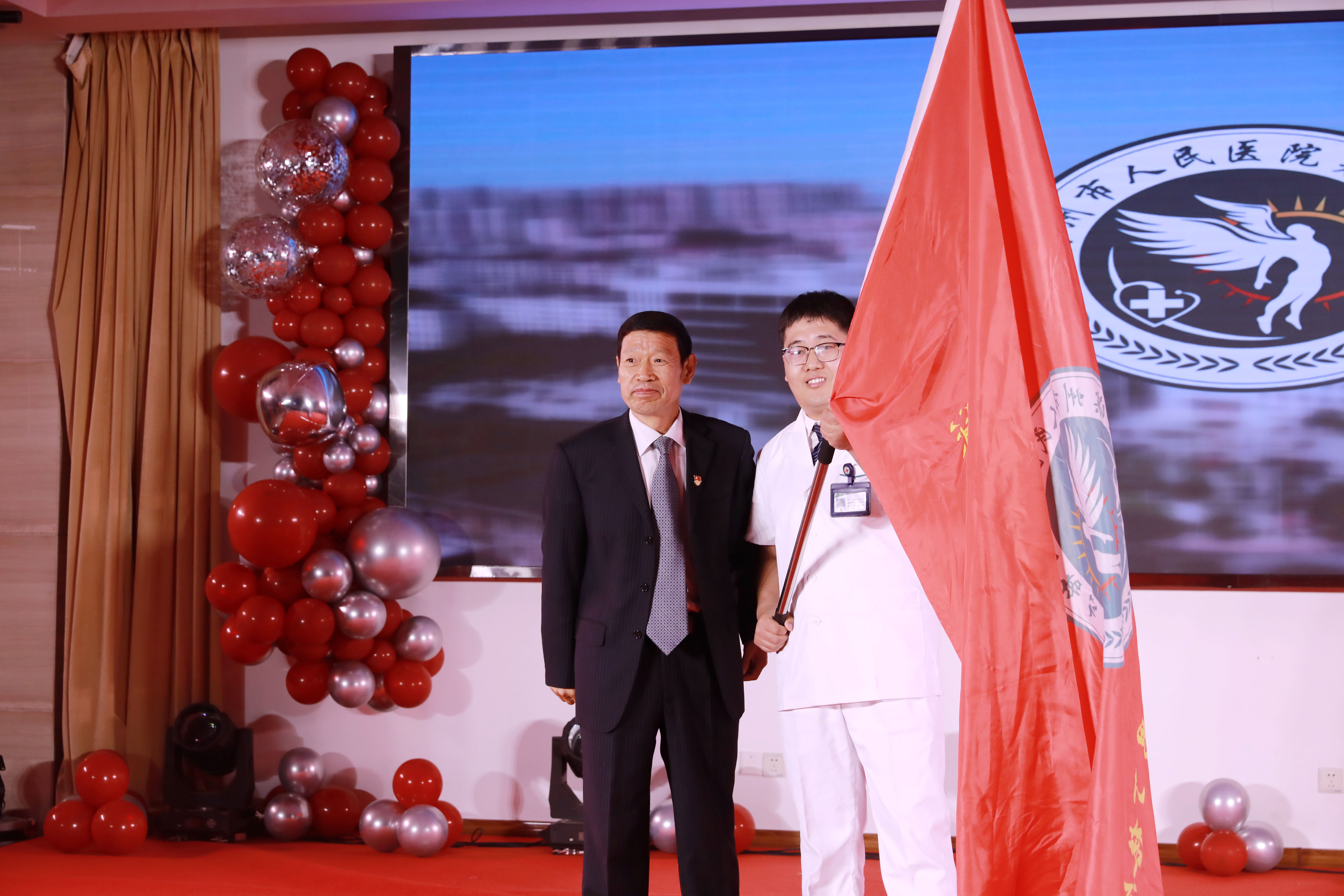 在典礼上,滨州市人民医院男护士团队—“男丁格尔”正式成立;院党委副书记张中学为其授旗,他们将发扬新时代救死扶伤、大爱无疆的“男”丁格尔精神,进一步提升综合素质和职业认同感,携手打造一支极具特色且业务精湛、勇于创新的男护士团队,为医院护理发展做出贡献。