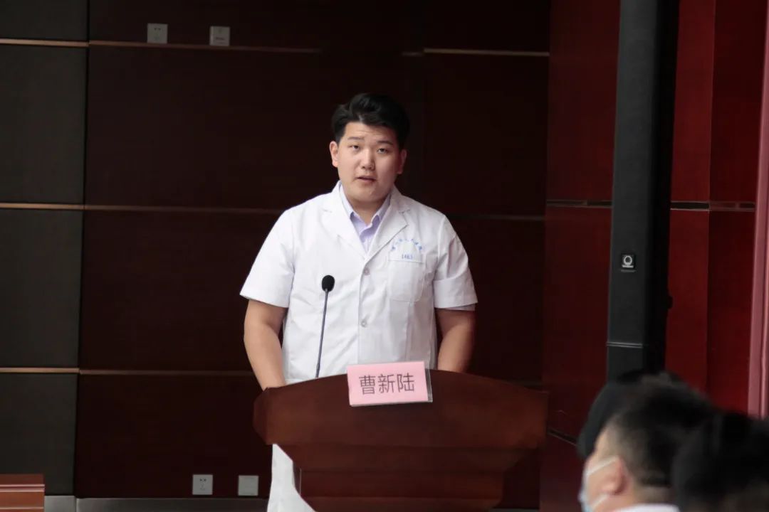 外单位住培医师代表曹新陆发言。他表示,住院医师规范化培训为大家的学习提供了机会,滨州市人民医院是大家学习的平台,将以奋发进取、努力向上的态度对待三年的培训和学习,完善诊疗思维,为成为一名合格的临床医师打下坚实的基础。