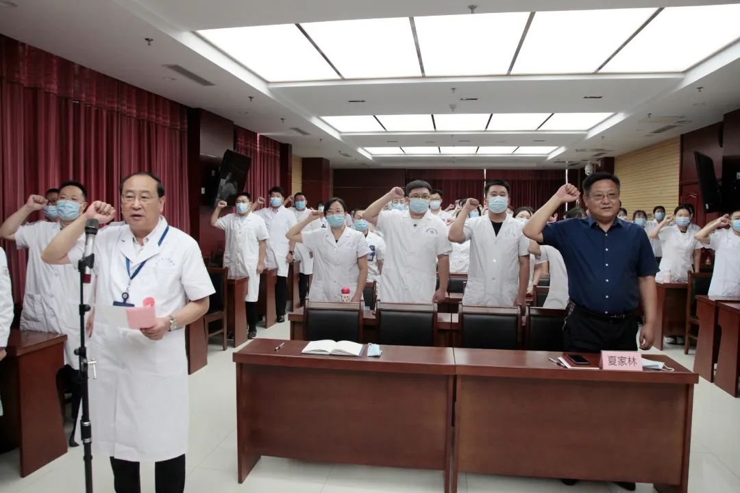金世禄副院长带领在场全体医师庄严宣誓。“我志愿献身人类的健康事业,自觉维护医学的尊严和神圣;敬佑生命,救死扶伤,平等仁爱,尊师重道……”开学典礼在一声声铿锵有力的宣誓声中圆满落下帷幕。